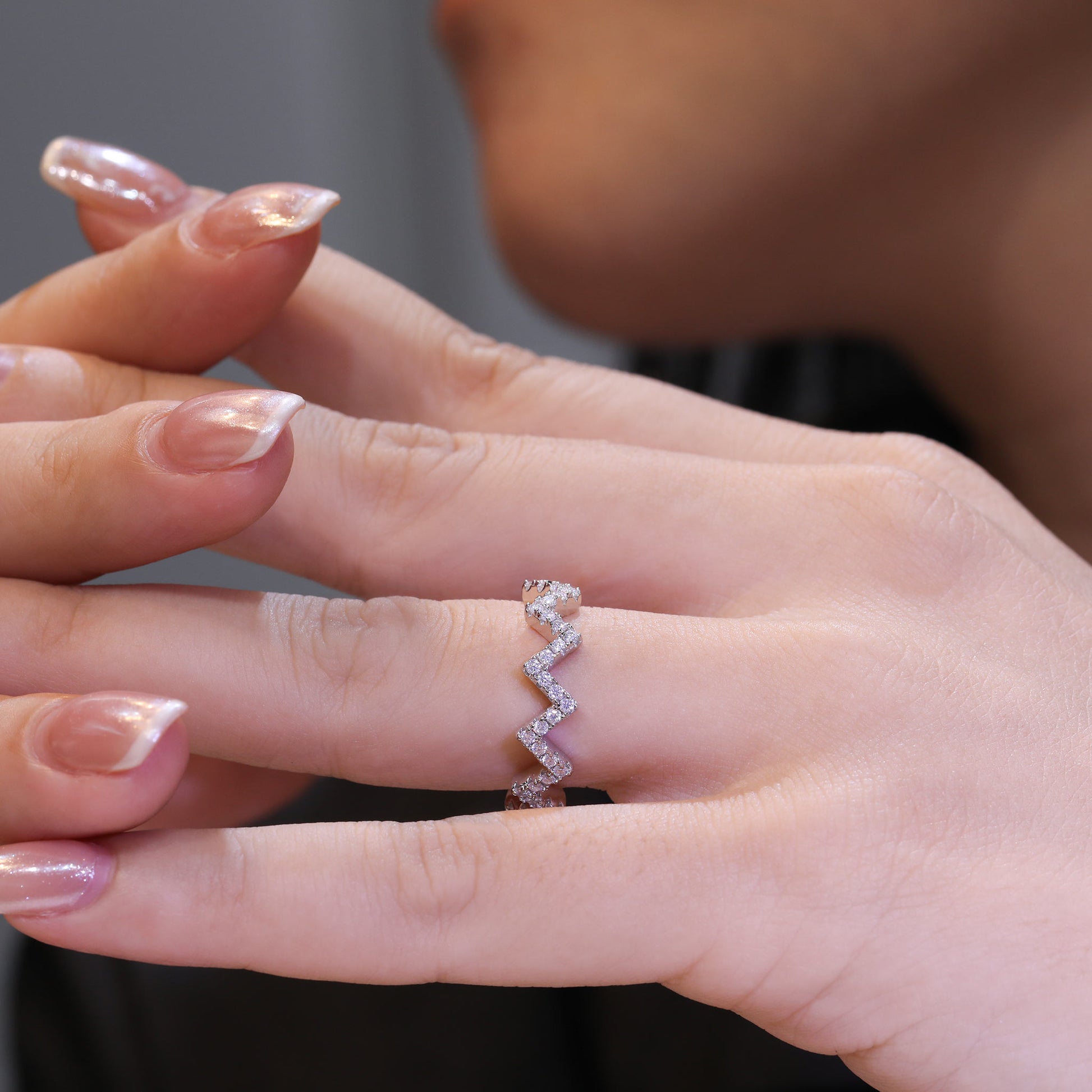 Enhance your engagement ring with this stylish Z-shaped moissanite wedding band. Crafted from high-quality S925 sterling silver and plated with white gold, this ring is adorned with brilliant moissanite stones for a sparkling effect. Perfect as a stackable ring or as a wedding band, it offers a modern and elegant design that complements any engagement ring. Durable, beautiful, and affordable, this guard ring is the ideal choice for adding a touch of brilliance to your special day.